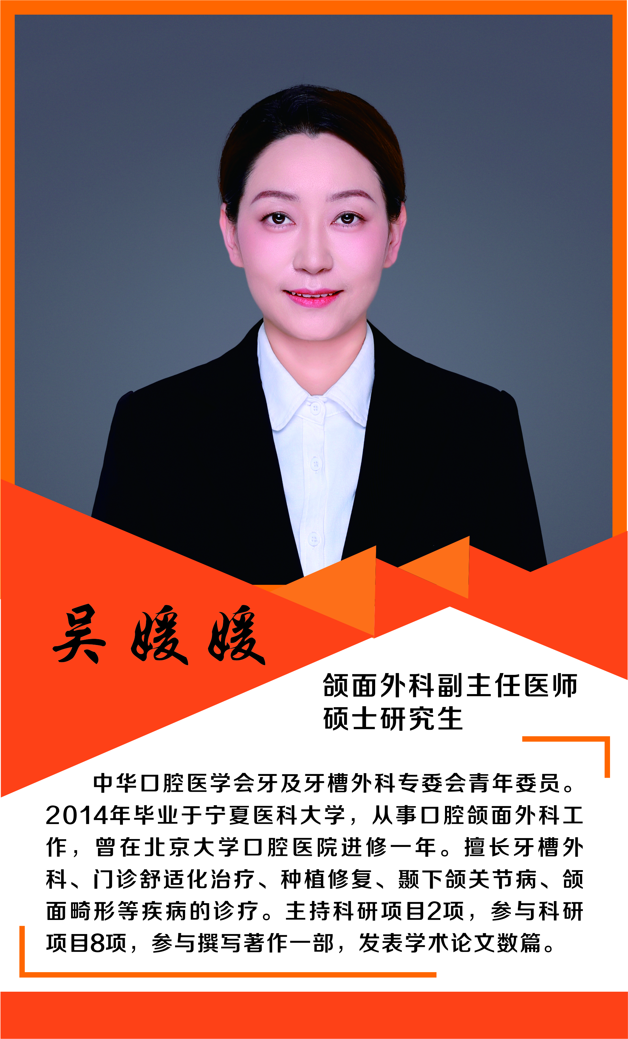 擅長牙槽外科、門診舒適化治療、種植修復(fù)、面部年輕化、頜面部創(chuàng)傷、顳下頜關(guān)節(jié)病、頜面畸形等疾病的診療。